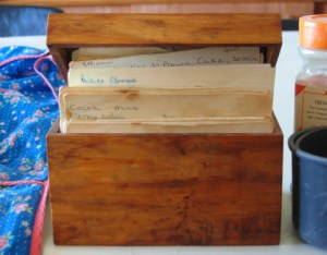 | My much used applewood recipe box… crafted from an old apple tree by husband, Rob. As you can see – the most favourite recipes can hardly be read due to the finger smudges! |