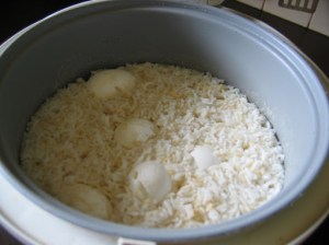 | save a step and place clean uncooked eggs in with the rice to cook. |