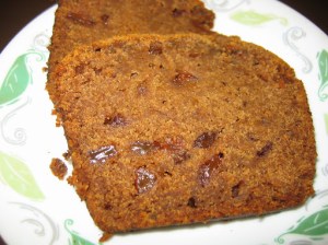 If you look at the two recipes you will see they are similar. To reuse the flopped cake and remake it into a decent wheat cake (for your family and friends who do not have to eat gluten free) you will take the flopped cake and crumble it into fine crumbs into a large mixing bowl. You can do this with your hands for most flopped gluten free cakes. When comparing the recipe you will see the flour amounts are almost the same. Measure out 1-2 cups of the crumbled flopped cake and place in another large mixing bowl. Add 1- 2 cups wheat all purpose white flour. DO NOT add any spices, salt or sugar as there is enough in the flopped cake. Add the eggs, the shortening and the raisins along with the liquid the raisins were soaking in. I also added 3 more teaspoons baking powder. Mix with a hand mixer until well mixed. You may have to add a bit more batter to make a thick batter (should be a batter not a dough). Pour into greased loaf pans about 3/4 full.