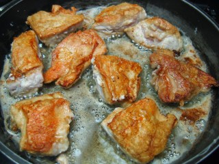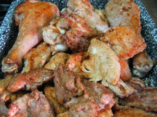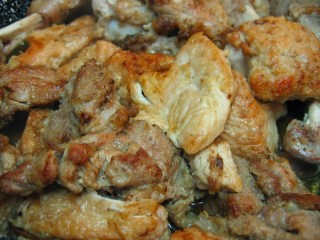 In large frying pan melt butter and oil together over medium heat. Brown each piece of turkey quickly and place in large roaster. I layer the breast meat on the bottom and then the brown meat so that the breast meat will not dry out.