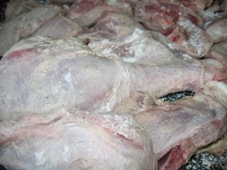Thaw turkey for a few days in the fridge. Cut into wings, drumsticks, thighs, breast meat etc.