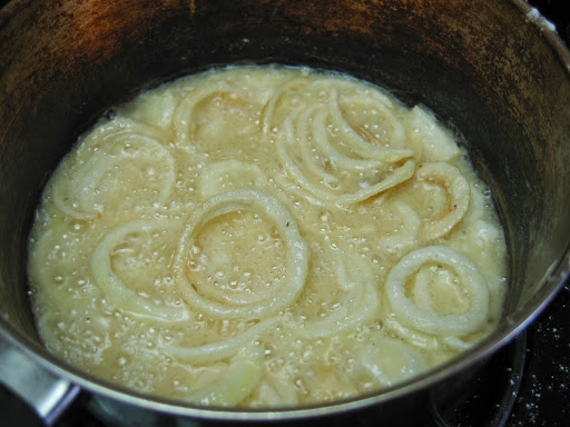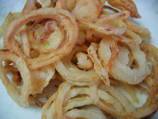 | Deep Frying the onions in about 1 1/2″ hot oil |