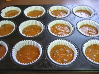 | Fill muffin liners 2/3 full. |