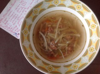 Every year for Soup and Skate the school asks parents to make Dutch Meatball soup.  The recipe includes packages of soup mix from the Dutch store.  The recipe is not gluten free so I worked at getting a homemade  version using no packages – it tastes quite good!