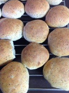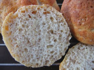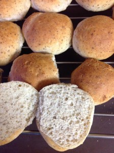 Put 1 cup warm water into mixer bowl. Stir in the sugar and yeast. Add the pysillium husk. Let sit 10-15 minutes until yeast starts to work. Add the pureed quinoa mixture and turn on mixer. Add remaining ingredients. Mix/knead for 15 minutes. Cover with clean dish towel and et rise in mixer bowl for about 60 – 90 minutes or until doubles in size. ** Grease the baking sheets and using a small ice cream scoop scoop the mixture onto the baking sheet. Cover with greased plastic or a clean dish towel. Make your hands very wet and using your fingers shape and smooth the dough. Let rise about 60 – 90 minutes. Bake at 375 for 20 minutes or until light brown. Remove from baking sheet onto rack and let cool.