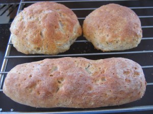 My daughter-in-law, Michelle, made a cake out of puréed quinoa for her daughter’s birthday and it was very good and moist – with good keeping qualities. She also made loaves of bread with some pureed quinoa and said it was quite moist but good and she would reduce the amount of quinoa next time to see if that was better. Today I tried it out with my recipe with 1/4 cup of pureed quinoa – they worked out very well and make a nice light bun – great for dinner rolls, hamburger and hotdog buns. I even made a loaf of bread out of 1.5lbs of the dough.