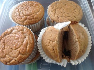 Yesterday evening I made Pumpkin Chocolate Chip Muffins and converted it to using gluten free grains and flours.  Sadly I did not write it down but did a “bit of this and a bit of that”…I will try it again and write it down as they worked out fabulously!  I had cooked leftover brown rice in the fridge and blended that till smooth with the pumpkin and egg mixture and then added rice flour and tapioca flour to make it the right consistency.  No one knew they were gluten free they were so good!  I also read about soaking grains last evening and came across a really neat blog called “Wholemade” and used her recipe to make Gluten Free Soaked Grain Banana Chocolate Chip Muffins.  I made a few minor changes to suit our tastes but most of the recipe is hers.  I like the fact that these muffins keep well, are not crumbly and use no guar or xanthan gums.  This recipe is gluten free, egg free and if you switch out the 1/4 cup milk for water or a non dairy milk and use non dairy chocolate they will be dairy free.