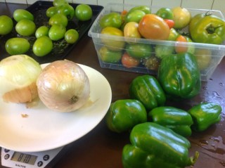 Wondering what to do with all the green tomatoes this fall? We kept our tomatoes ripening slowly until the last frost and decided to salvage the green ones to make relish. This relish turned out very well and tastes quite a bit like bread and butter pickles. The colour is not dark green like store bought relish but the taste is really nice and if you really prefer a dark green you could add
