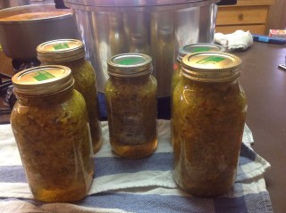 Or, if you prefer process in pressure canner at 10lbs pressure for 15 minutes. Turn off heat and let pressure down slowly following canner instructions. Makes 6 quarts.