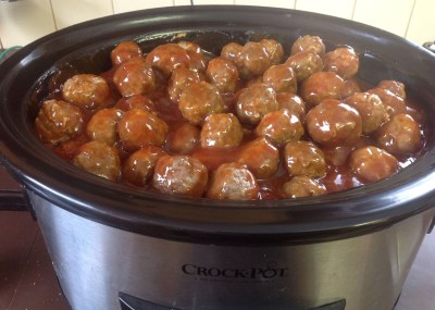 Place in large pot and stir until combined. Bring to a boil stirring occasionally until thickened. Pour over meatballs. Heat in slow cooker or roaster as you would your regular recipe.