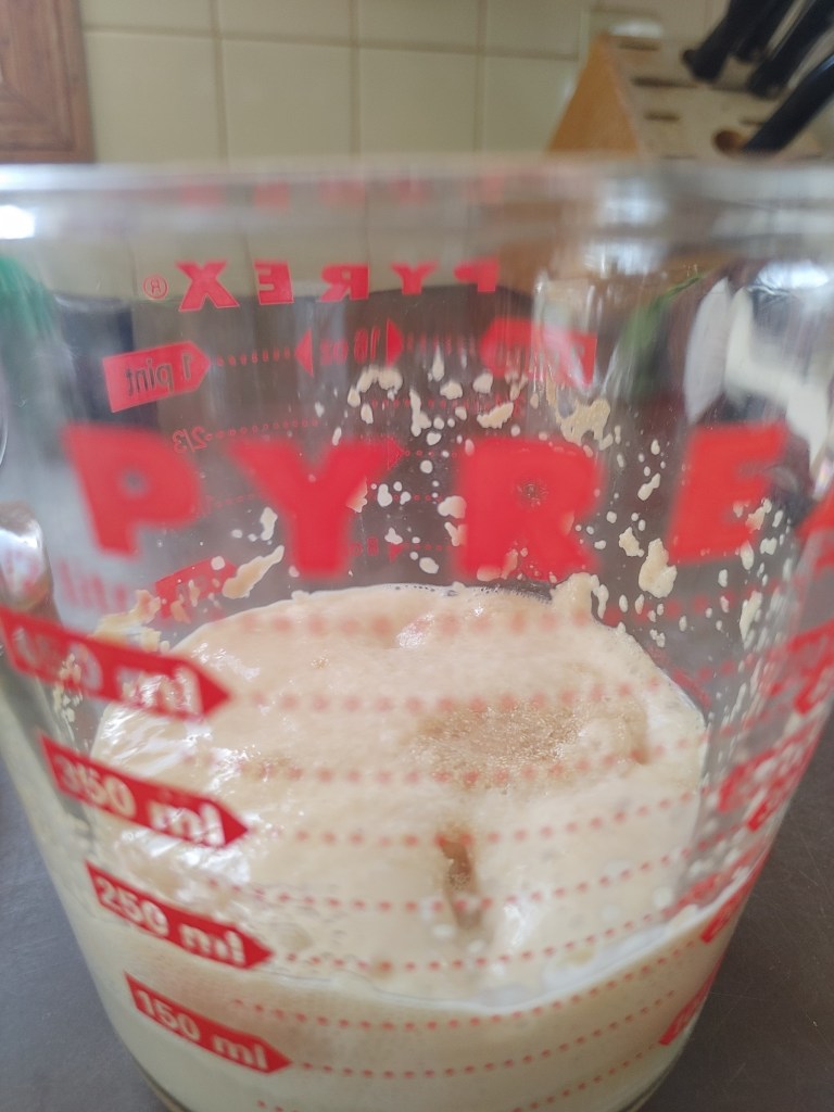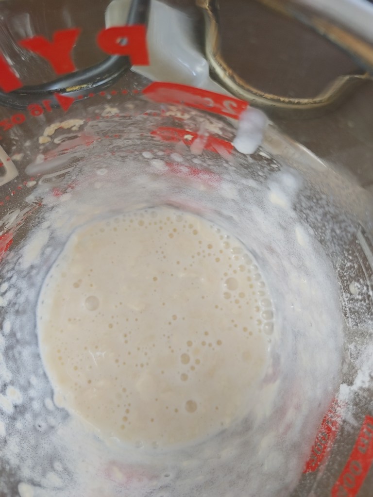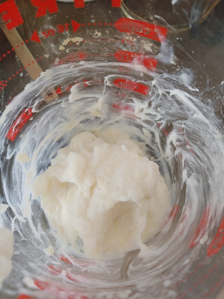 Using a wisk, or immersion blender with wisk attachment whip the xanthan gum and milk together until foamy and thickened. set aside.