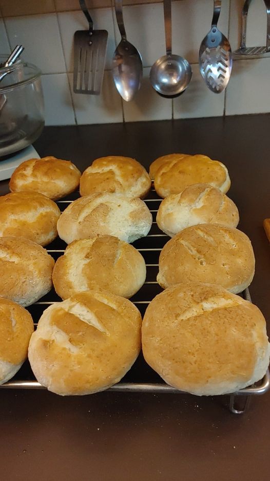 While visiting family in British Columbia’s lower mainland our sons, wives and children were able to to sample some potato buns at a café in the area. They enjoyed them so much that my daughter-in-law Michelle said I should try and make something similar. This recipe makes 8- 10 good sized buns. I bake them in a muffin top pan – haven’t tried on a baking sheet. The dough is very soft and needs to be handled lightly.
