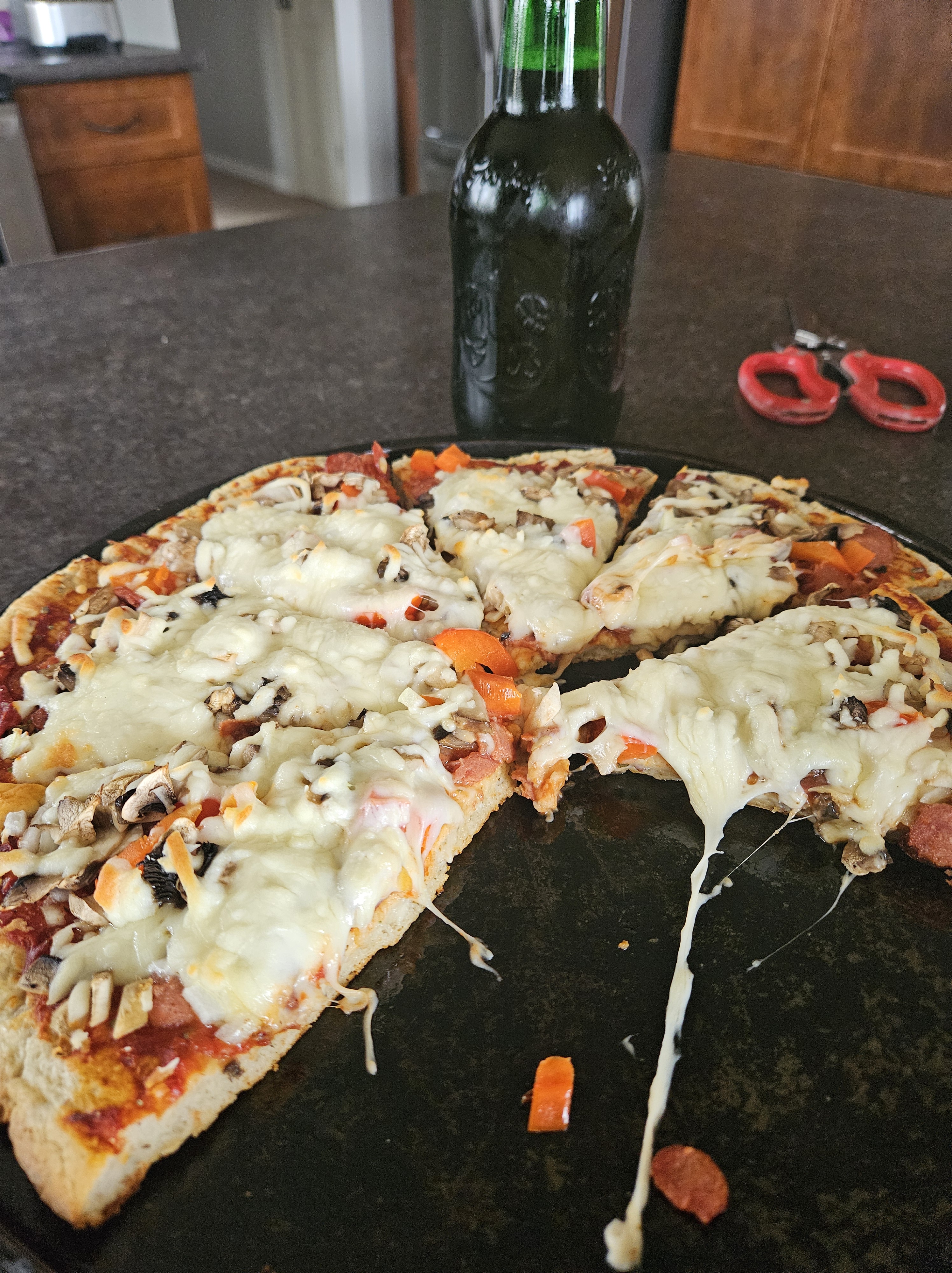 This is a really nice recipe. Its crispy bottom and light texture make it one of the nicest pizza crusts I have ever made.